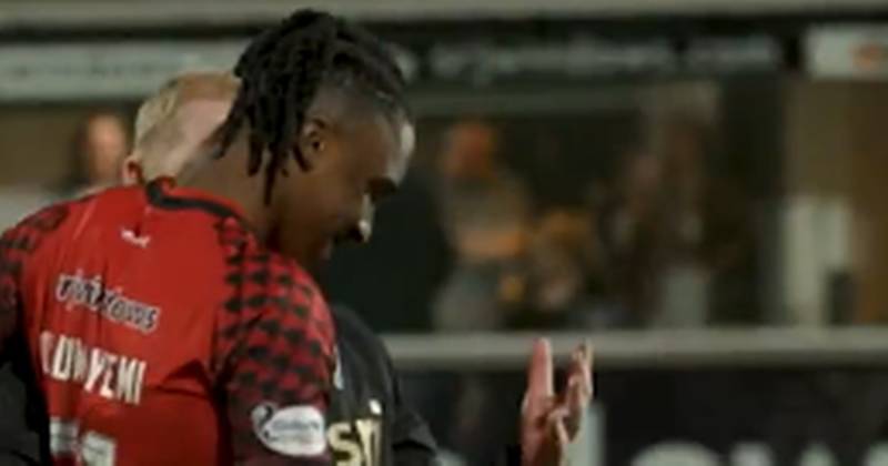 Lennon led the celebrations on the pitch after Dunfermline beat Livingston and shared a touching moment with a Hoops loanee